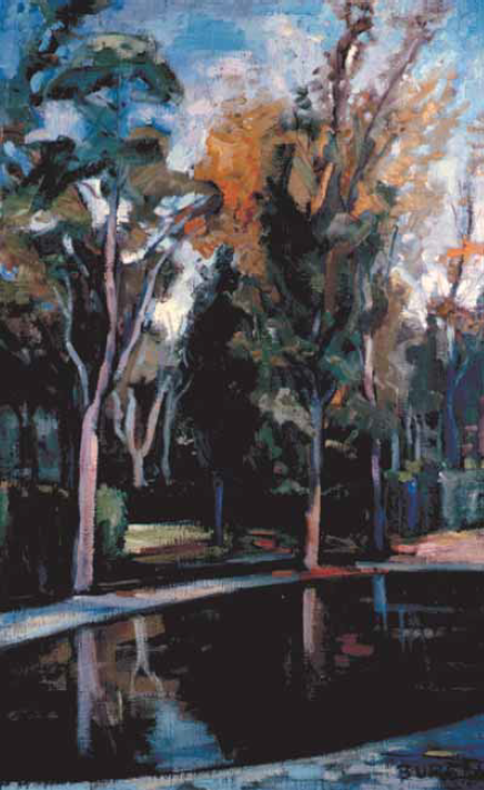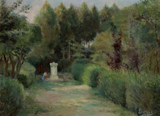 En 1960 María Pilar Burges regresó a Roma para ampliar su formación en el Istituto Centrale del Restauro, con una pensión de perfeccionamiento del Gobierno de Italia. Allí, el contacto con las corrientes abstractas y expresionistas amplió decisivamente su horizonte plástico. Desde entonces, su obra se caracterizó por una creciente libertad formal, una marcada raíz expresionista y una concepción abierta del lenguaje pictórico. Asimismo, durante el verano de 1965, la autora amplió su formación en el ámbito de la pintura mural en la Escuela Internacional de Pintura Mural de San Cugat del Vallés, becada por el Ministerio de Educación. Tras su regreso a Zaragoza, recuperó el paisaje mediante una intensa luz y el uso predominante de colores ocres y contornos delimitados. La posterior experiencia parisina influyó en una mayor estructuración del espacio pictórico, próxima al neocubismo, en una paleta más fría y en un dibujo dinámico y sintético.