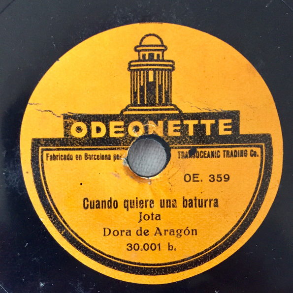 – “Las últimas novedades en discos Odeon. Impresión eléctrica, sistema veroton”, Heraldo de Aragón, 21 de junio de 1928, p. 14. [Dora de Aragón, 30.001. Segadora – Jota. Cuando quiere una baturra – Jota]