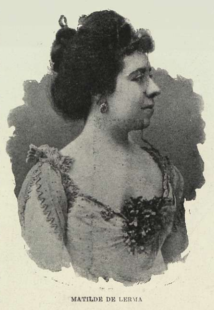 – “La de Lerma”, La Correspondencia de España, Madrid, 25 de febrero de 1900, p. 2. [Terminado su contrato en Madrid con la empresa del Real la aplaudida prima-donna, señorita Matilde de Lerma, partirá en breve para Moscou, para cuyo teatro de la Opera ha sido contratada]