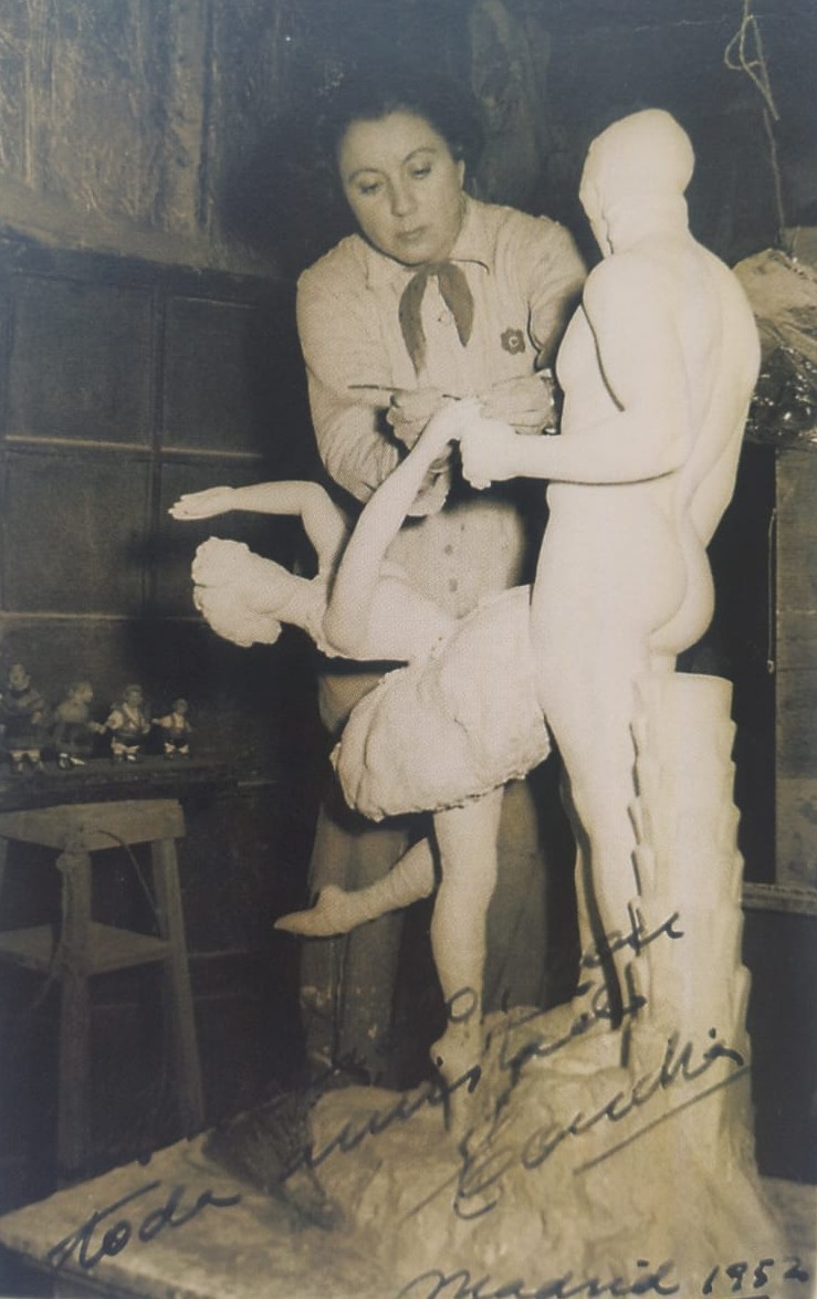 Concha Lago Giménez, nacida en 1906, fue una escultora aragonesa que inició su trayectoria artística a finales de los años veinte, en el ámbito de las artes decorativas. Destacó especialmente por sus muñecos de trapo de tono humorístico, que merecieron elogios por la gracia expresiva, el ingenio y la calidad técnica de las figuras.