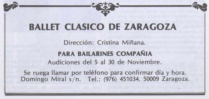 – 1983: Directora del Ballet Clásico de Zaragoza.