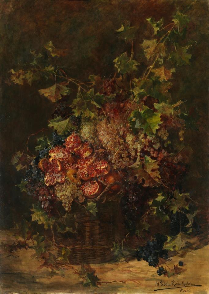 María Luisa de la Riva especializó su obra en bodegones con frutas y floreros, géneros que utilizó para transgredir los principios académicos y las limitaciones impuestas a las artistas, llevando a cabo obras en grandes formatos, cuyos motivos superaban el tamaño natural. Este quebrantamiento de las normas conllevó, por un lado, el desaire de parte de la crítica y, por otro, la valoración de su valentía creativa. También dedicó parte de su producción al retrato, escenas costumbristas y paisajes. Su versatilidad en el tratamiento de diferentes técnicas pictóricas como el óleo, pastel, acuarela o gouache, le permitió llevar a cabo una amplia producción artística.